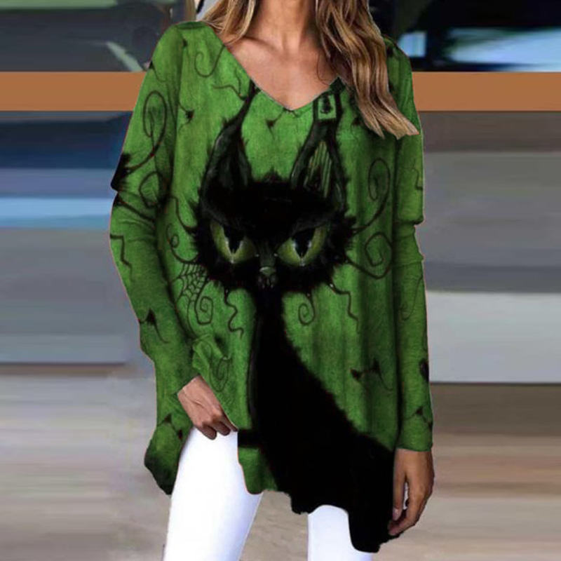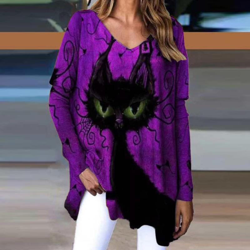 Add a dash of fun and mystery to your style with this charming cobweb-and-cat oversized T-shirt.